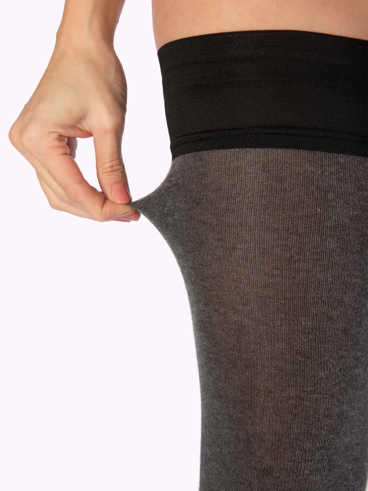 If plush is your thing, then OLIVIA is your girl. She's entirely beautiful in that classic Italian-made way and can't help from being alluring while also delightfully reassuring, thanks to her reassured toe. The opaque style essentially carves out your legs, sculpting their already gorgeous lines. At 80 denier, she's all softness, warmth, and comfort wrapped up in timeless style. To top it all off, she wears a Solid black band as her crown.
