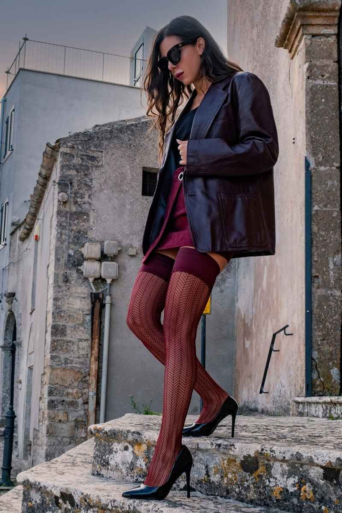 Elevating the best of both contemporary and vintage, SOFIA brings the extraordinary to the ordinary. Glimpses of your legs tantalizingly peek out from beyond the gorgeous herringbone pattern lines of these goddess-like thigh highs that draw attention and claim the spotlight.
